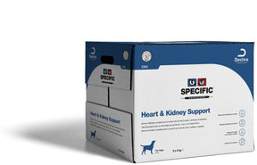 SPECIFICTM Heart and Kidney Support er et komplet afbalanceret fuldfoder til voksne hunde med hjert-, nyre- eller leversvigt. Foderet har et lavt fosfor / natriumindhold og reduceret proteinindhold af høj kvalitet. Kosten har et højt indhold af essentielle fedtsyrer, inkl. omega-3 fedtsyrer fra fiskeolie, meget letfordøjelige kulhydrater og øget K /Na-forhold. Foderet dækker alle ernæringsmæssige behov hos hunde og fremmer hundens sundhed.