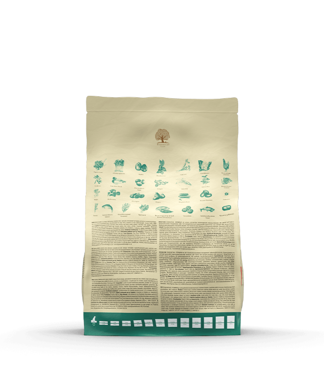 De fleste hunde kan ikke modstå smagen af ESSENTIALS. Det kan dog ske, at de ikke spiser op. Dette er ikke fordi de er kræsne, men fordi ESSENTIALS giver en anden følelse af mæthed. Hunden bliver naturligt mættet. Hvis din hund er meget kræsen, skal du prøve at hælde noget varmt vand over foderet eller omrøre en til to spiseskefulde ESSENTIAL OMEGA 3 OLIE i foderet.