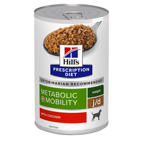 Hill's Prescription Diet Metabolic + Mobility vådfoder er et diætetisk fuldfoder til vægttab, vægtvedligehold og til støtte af ledsundhed hos voksne hunde.