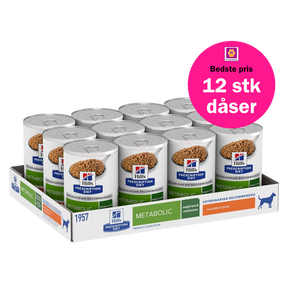 Hill's Prescription Diet Metabolic vådfoder er et diætetisk fuldfoder til mindskelse af overvægt og vedligeholdelse af sund vægt hos voksne hunde. Daglig fodringsvejledning (370 g dåser):