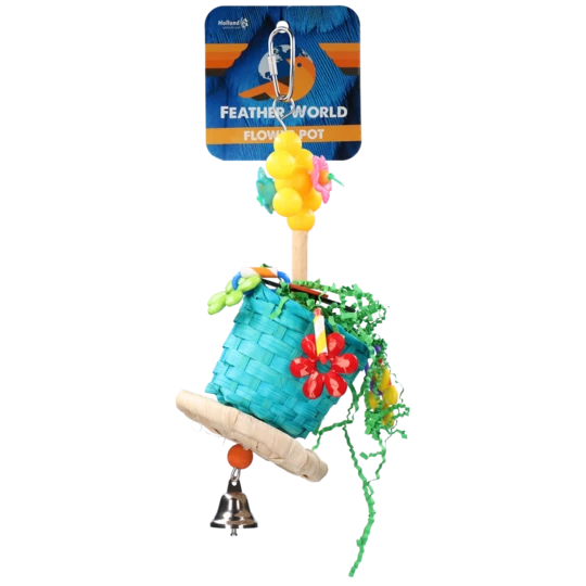 Den kan nemt placeres i buret og er fuld af sjove detaljer, såsom bambus og en lille klokke.