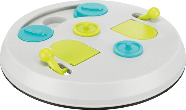 Dette spillebræt til gnavere tilbyder berigende underholdning med flere åbningsteknikker, der giver dyret adgang til belønningen. Brætspillet indeholder 2 låg med fordybninger, der benytter klap- og skydelåg for at udfordre dyrets intelligens. Lavet af plast, sikrer brættet skridsikkerhed takket være en gummiring. Det giver dyrevenlig beskæftigelse og psykisk stimulering. Inkluderer også en træningsvejledning for at hjælpe ejere med at optimere dyrenes leg og indlæring.