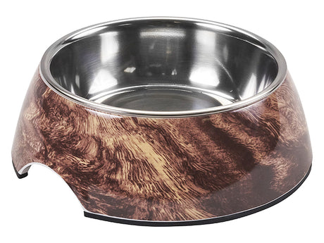 Royal hundeskål, brun marmor design, rund med udtagelig stål skål