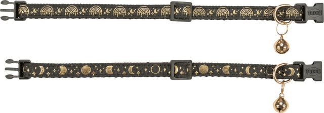 Kattehalsbånd, sort med guldmotiv & bjælde