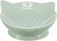 Flot skrå madskål til katte. Den er lavet i keramik. Farven i skålen er blank grøn farvet.