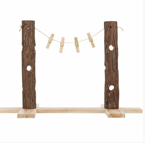 Udstyres med grøntsager, grene o.lign. dyrevenlig beskæftigelse og psykisk stimulation træ med bark/naturligt træ, ubehandlet.