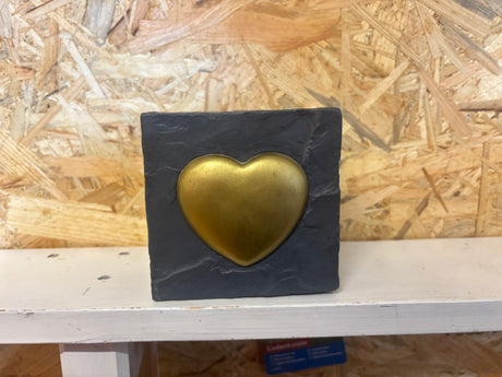 Gravsten, Memorial Stone Cube Memory med guld hjerte <3