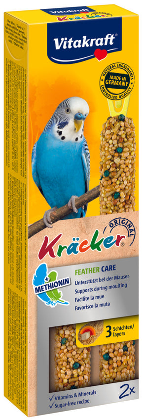 Den uimodståelige Kräcker® Feather Care smager ikke kun godt, men tilbyder også dyrene en værdifuld funktion . Denne variant indeholder livsvigtige vitaminer, mineraler og den essentielle aminosyre methionin for optimalt at understøtte fældning .