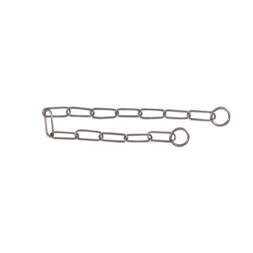Dette kvælerhalsbånd med lange led er det perfekte valg til din langhårede hund. De lange led forhindrer håret i at blive filtret og trukket ud, hvilket gør det mere behageligt for din hund at have på. For at sikre, at din hund ikke kvæles, anbefaler vi at sætte linen på som vist på billedet. Dette sikrer, at trykket fordeles jævnt rundt om halsen og ikke koncentreres på ét punkt. Dette kvælerhalsbånd er et holdbart og praktisk valg, der vil hjælpe dig med at opretholde kontrol over din hund under gåture og træning.