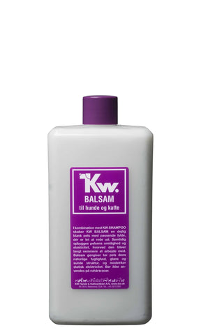 I kombination med KW SHAMPOO skaber KW BALSAM en dejlig blank pels med passende fylde, der er let at rede ud. Samtidig opbygges pelsens smidighed og elasticitet, hvorved den bliver langt nemmere at arbejde med. KW BALSAM gengiver tør pels dens naturlige fugtighed, glans og sunde struktur, og modvirker statisk elektricitet. Bør ikke anvendes på ruhårsracer.