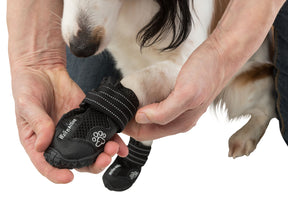 Er du aktiv udendørs med din firbenede ven i enhver sæson af året? Vores potebeskyttelse Walker Active beskytter din hunds poter om vinteren mod grus og vejsalt og tilbyder skridsikkert greb under glatte forhold takket være den robuste slidbanesål. Om sommeren giver den beskyttelse mod varme overflader såsom asfalt. Det beskytter også din bedste vens poter mod skader forårsaget af skarpe sten i særligt stenet terræn. Takket være reflekterende striber er du også sikker med din hund om natten. Samtidig er der altid sikret optimal bærekomfort. Det åndbare mesh-materiale holder din hunds poter tørre, og krog- og løkkebeslagene sikrer et sikkert hold og forhindrer at glide. Vores Walker Active potebeskytter fås i otte forskellige størrelser.