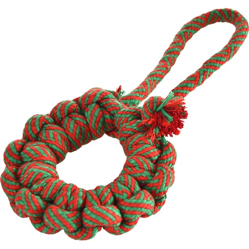 Dette flettede Hunde Jule Reb i klassiske julefarver rød og grøn er et perfekt julelegetøj til hunde, som elsker at finde på ballade og hyggespil. Rebets kompakte størrelse på 16x29cm gør det nemt at kaste, ryste i og lege trække-leg med både små og mellemstore hunde. Fremstillet af slidstærkt materiale, så legen kan fortsætte gennem hele december og mange hyggetimer efter juleferien.