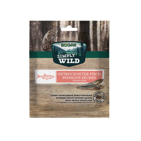 Simply Wild Dried Fish fra Bogar er en enkel og smagfuld snack til katte – lavet af 100% tørret fisk uden nogen former for tilsætningsstoffer. En uimodståelig delikatesse fyldt med protein, omega-3 og smag fra naturen.