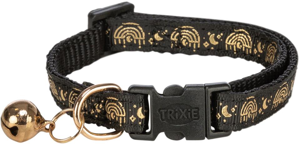 Kattehalsbånd, sort med guldmotiv & bjælde