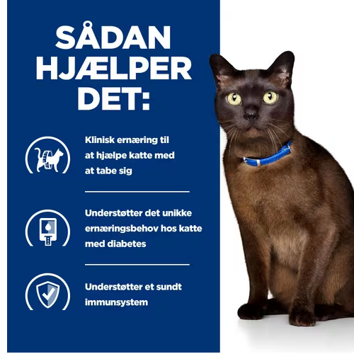 ● Klinisk ernæring sammensat til at hjælpe katte med vægttab og regulering af blodsukkeret.