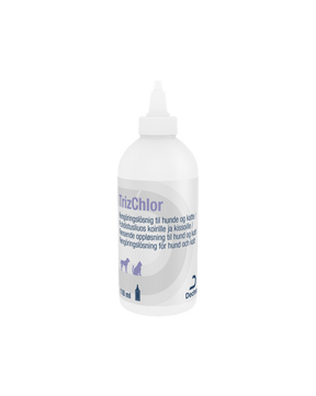 TrizChlor er en klorhexidinopløsning til hunde og katte, der fungerer som en multi-renseopløsning, der undertrykker bakterier.
