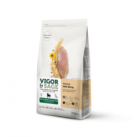 Vigor & Sage Ginseng Well-Being Small Breed Adult Dog – kornfrit hundefoder til små hunde
