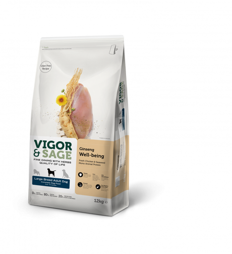 Vigor & Sage Ginseng Well-Being Large Breed Adult Dog – kornfrit hundefoder til store hunde