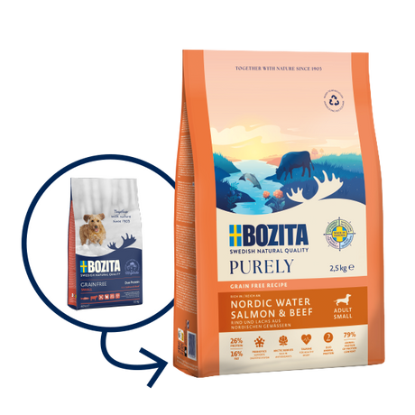 Bozita Purely Adult Small Salmon & Beef – kornfrit hundefoder til små hunde
