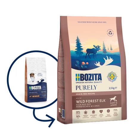 Bozita Purely Puppy & Junior Elk – kornfrit hvalpefoder fra Sverige