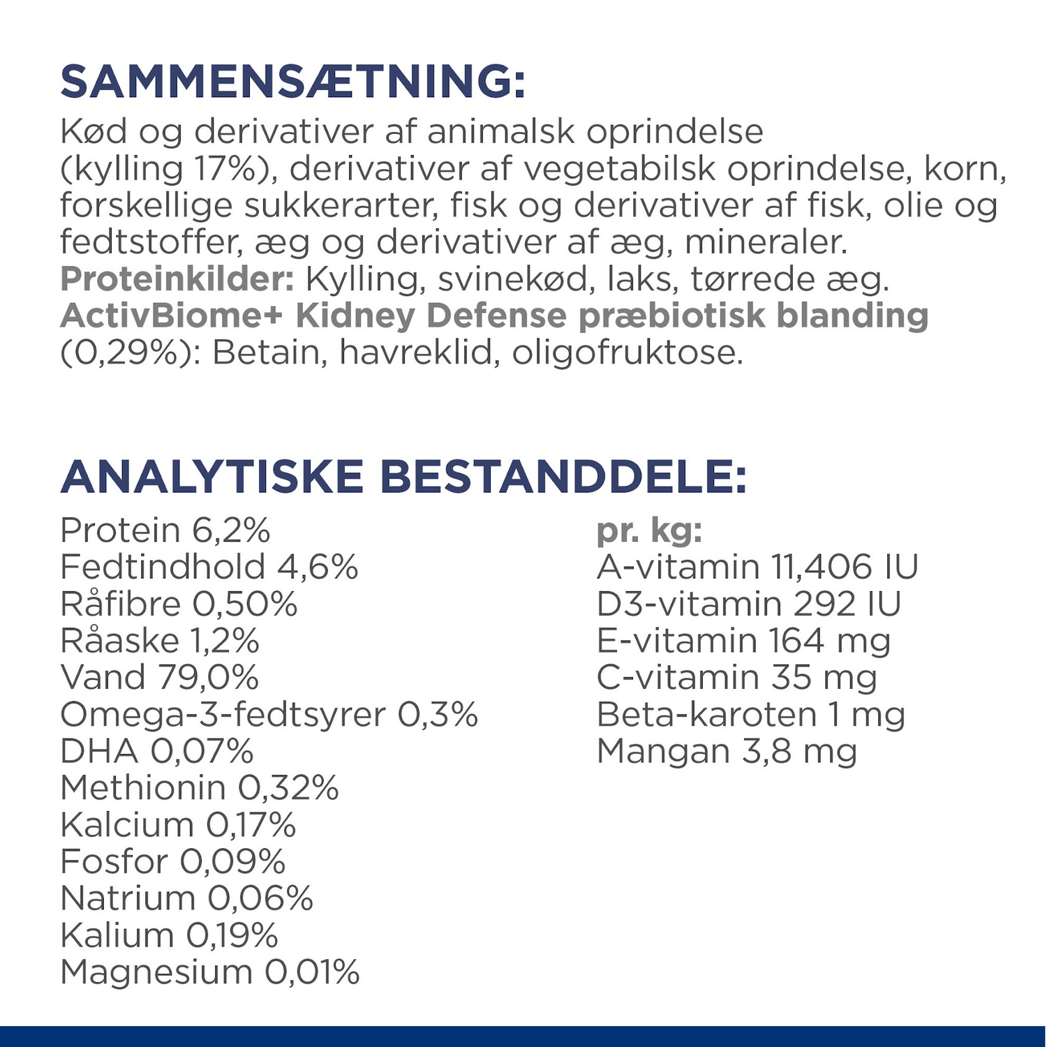 Dette diætetiske fuldfoder er sammensat til katte med nedsat nyrefunktion og ledproblemer, og er særligt velegnet til ældre katte, der har behov for støtte på flere områder. Kyllingesmag i lækre mundrette bidder i sovs gør det let at servere, selv til kræsne katte.