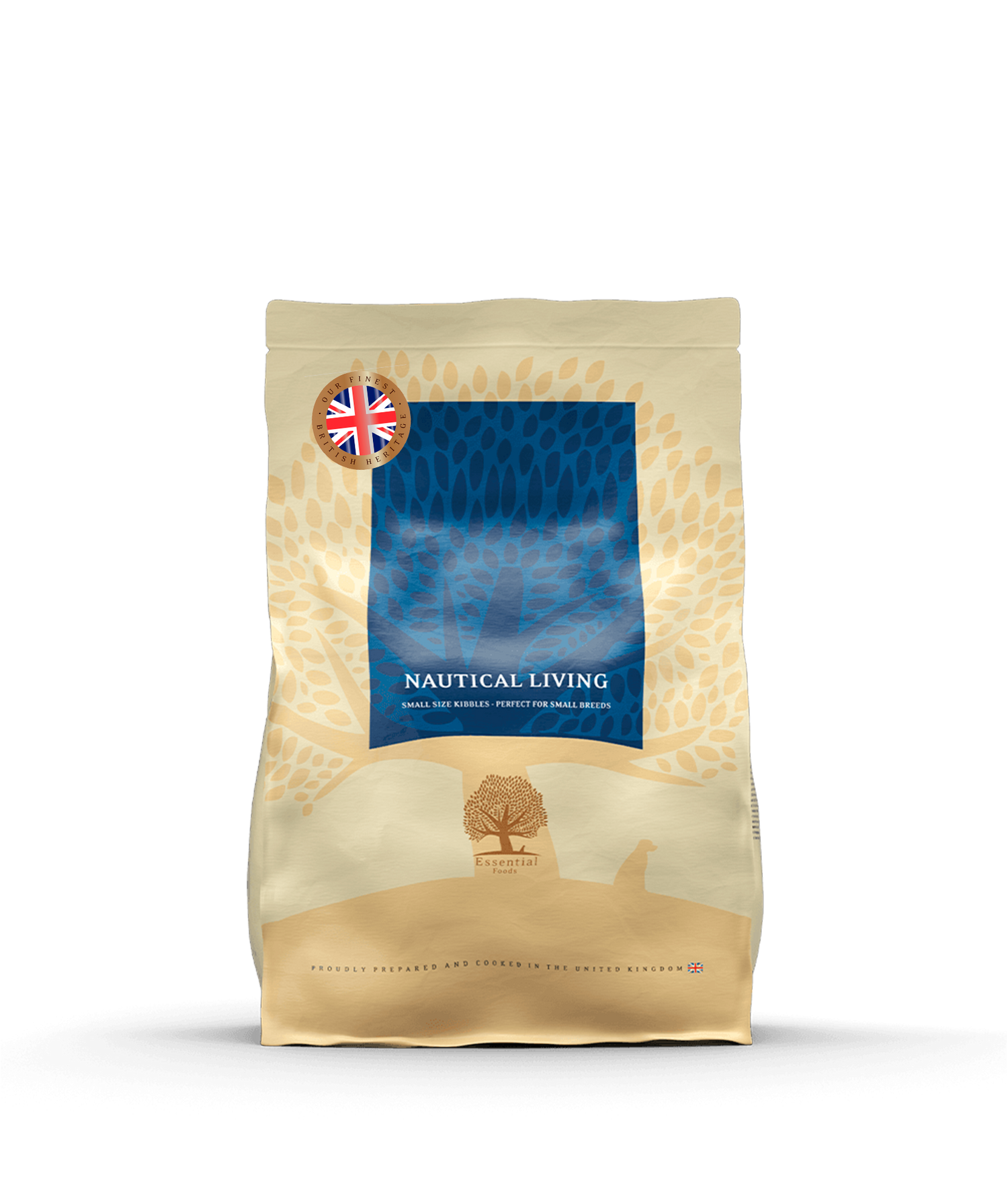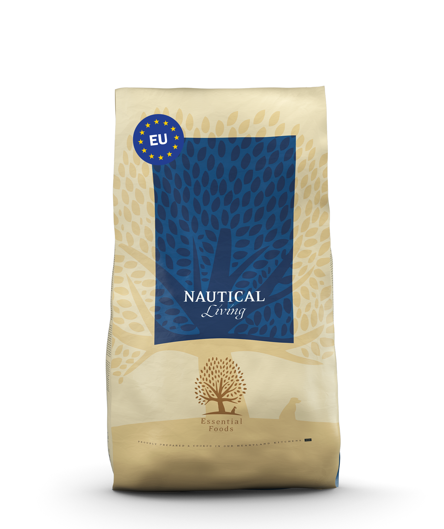 ESSENTIAL NAUTICAL LIVING er vores ultimative, kornfri opskrift til voksne hunde – tilberedt i vores engelske traditionskøkken: Our finest British Heritage Kitchens. Med generøse mængder frisk skotsk laks, ørred og sæsonens udvalgte fisk, leverer dette måltid en udsøgt smagsoplevelse, som selv de mest kræsne hunde vil elske.