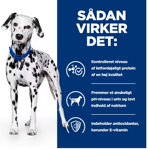 Dette foder anbefales til voksne hunde, der har behov for at reducere risikoen for urat- og cystinsten eller støtte blæresundheden. Kontakt altid din dyrlæge før brug, især hvis din hund har andre helbredsproblemer.