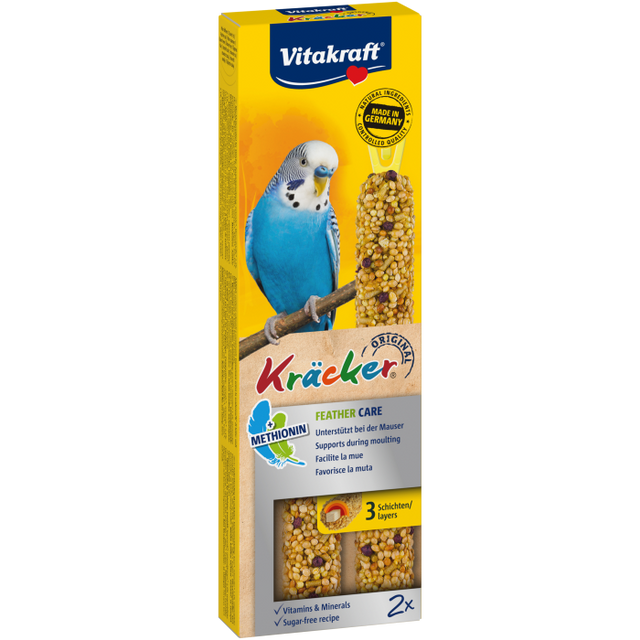 Den uimodståelige Kräcker® Feather Care smager ikke kun godt, men tilbyder også dyrene en værdifuld funktion . Denne variant indeholder livsvigtige vitaminer, mineraler og den essentielle aminosyre methionin for optimalt at understøtte fældning .