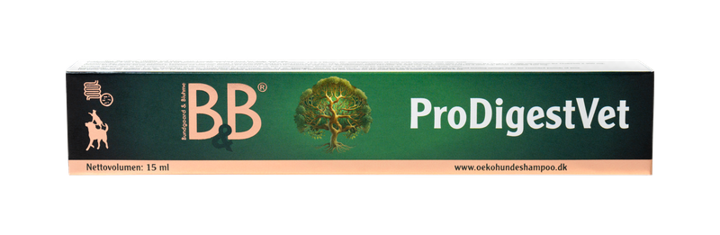 Den mælkesyreproducerende og tarmflorastabiliserende bakterie Enterococcus faecium, der anvendes i B&B ProDigestVet, passerer uberørt gennem maven og sikrer en hurtig kolonisering af tarmsystemet. Det medfører at antallet af gavnlige mikroorganismer øges og en udelukkelse af potentielle pathogene bakterier fremmes. Takket være dette forbedres fordøjelsen også.